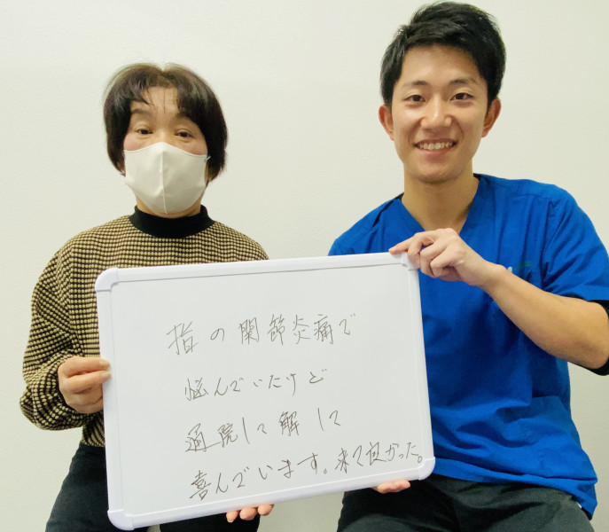 「指の関節炎で悩んでいたけど、解して喜んでいます。来て良かった。」